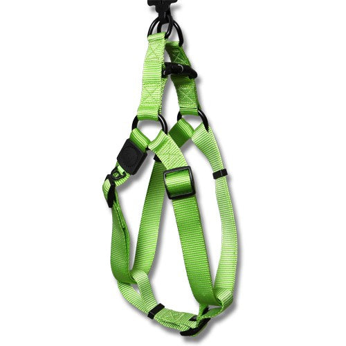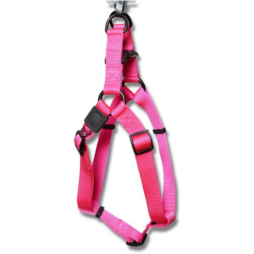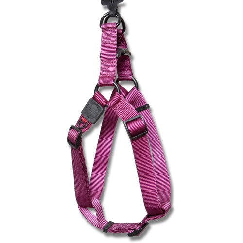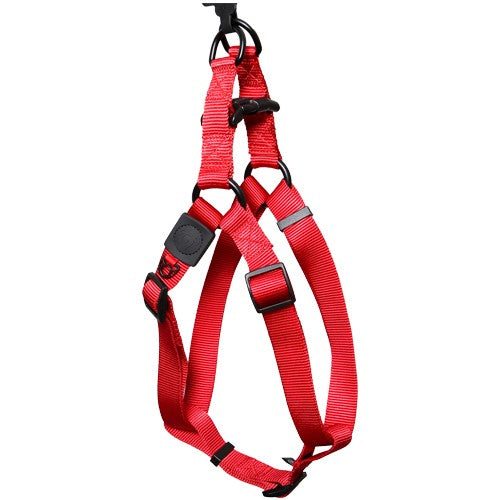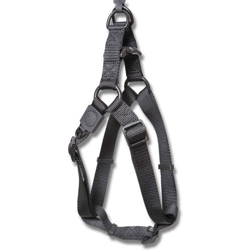 Bainbridge nylon step in dog harness with logo is a comfortable fitting design and soft, quality materials that are fray resistant. Durable plastic top buckle for easy closure of harness (step in) and adjustable tri-glide chest straps for fast adjustment. Two fully welded D-rings for added security & strength and a ID tag attachment.