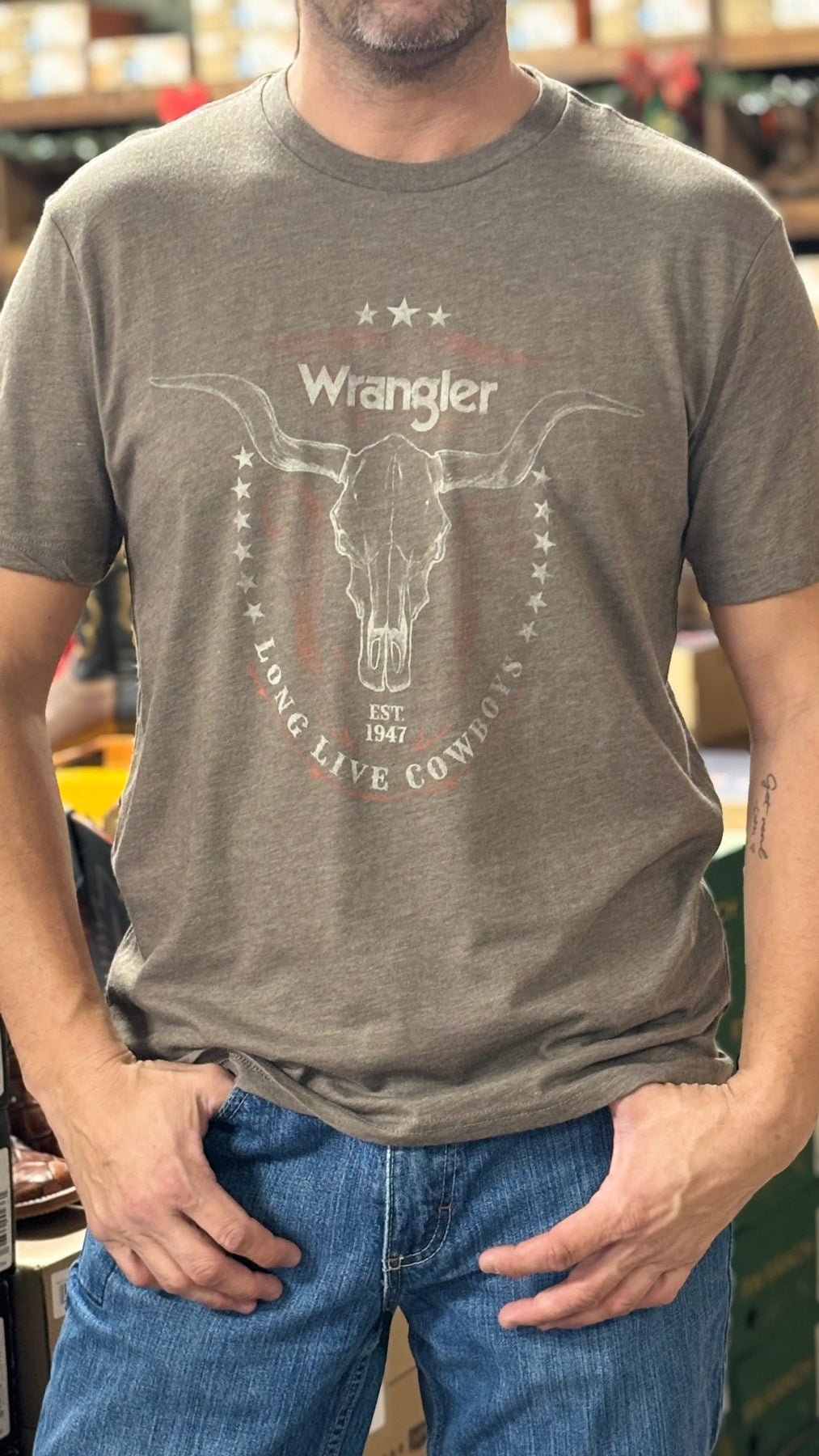 - Classic Wrangler Retro® graphic with Western flair