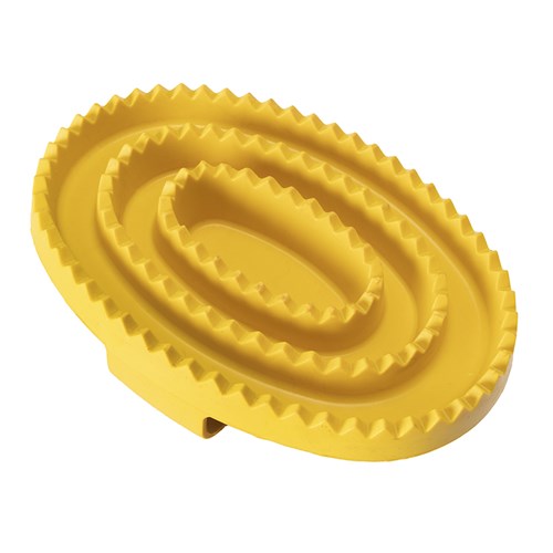The Rubber Curry Comb is an essential grooming tool for horse owners, perfect for shedding your horse's winter coat and removing dirt or mud. Its oval shape and flexible design make it easy to use, allowing you to effectively massage the skin while loosening debris. This comb is especially useful when washing your horse, as it helps the shampoo penetrate deeper into the coat for a more thorough clean. Available in two sizes—small for children's hands and large for adults and teenagers—this comb is designed to accommodate users of all ages.